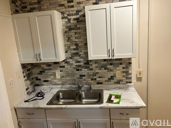 1BR, 1 bath apartment with laminate flooring throughout. Also includes a stove, fridge, central AC, and street parking. 2nd-floor unit.